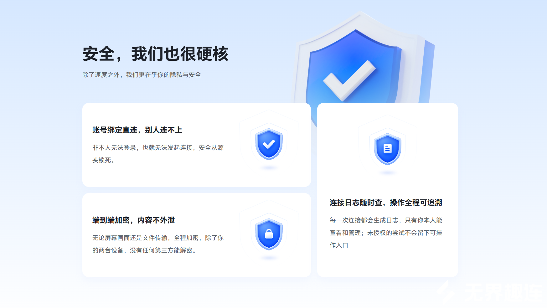 协同办公常涉及敏感工作数据,安全与兼容性至关重要。无界趣连2.0采用端到端加密技术,所有传输的数据都会经过多重加密,全方位保障数据安全。同时兼容性极佳,支持电脑、手机、平板多端互通,适配Windows、macOS等各类系统,满足不同场景下的协同办公需求。